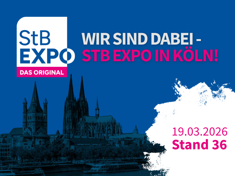 Am 19. März 2026 sind wir auf der StB EXPO in Köln vertreten. Sie finden uns am Stand 36.